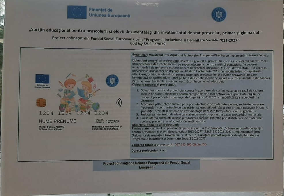 PROIECT COFINANȚAT DIN FONDUL EUROPEAN DE DEZVOLTARE REGIONALĂ ȘI FONDUL SOCIAL EUROPEAN PLUS PRIN PROGRAMUL DE INCLUZIUNE ȘI DEMNITATE SOCIALĂ (PoIDS 2021 – 2027) – COD IDENTIFICARE (MYSMIS): POAD/980/1/3/152590